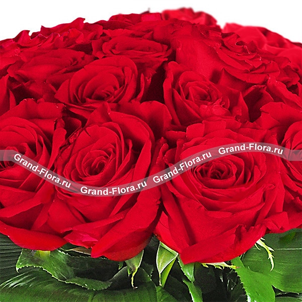 51 роза: роза красная - 51шт. (Эквадор), лист аспидистры - 4 шт., упаковка, лента.